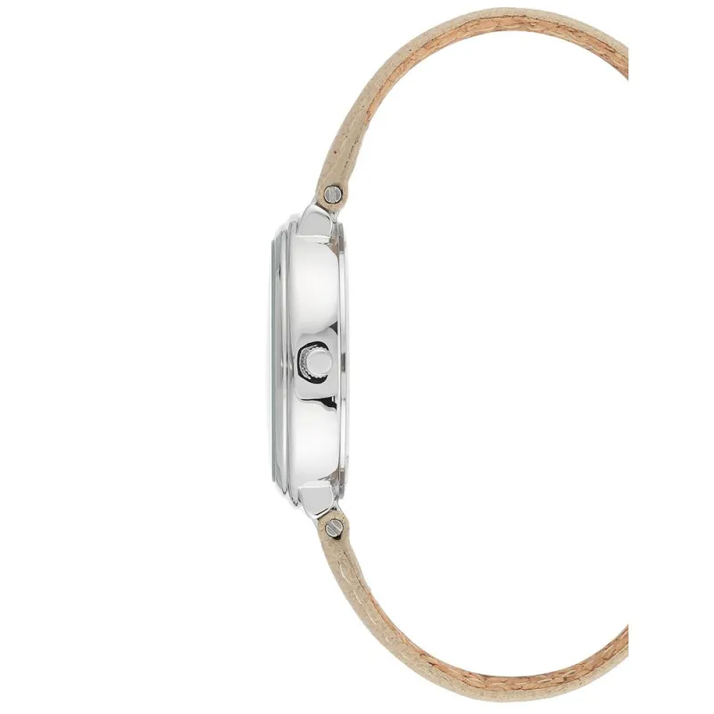 Anne Klein 34mm AK-3713GMTN to zegarek solarny o klasycznym i eleganckim designie. Posiada srebrną kopertę otaczającą tarczę z masy perłowej o unikalnych odcieniach fioletu i zieleni, co nadaje mu luksusowego charakteru. Pasek w beżowym kolorze wykonany z wysokiej jakości skóry zapewnia wygodę noszenia i subtelność stylu. Zasilanie energią słoneczną sprawia, że zegarek jest przyjazny środowisku i praktyczny w codziennym użytkowaniu. Idealny wybór dla kobiet ceniących klasykę z nutą nowoczesności.