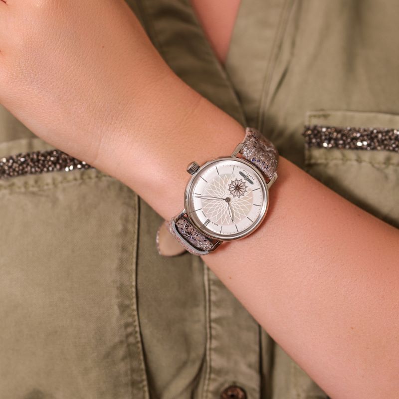 | Dodatkowe informacje | Dodatkowy pasek, mały sekundnik w formie mandali, tarcza wykonana z prawdziwej masy perłowej w kształcie mandali |